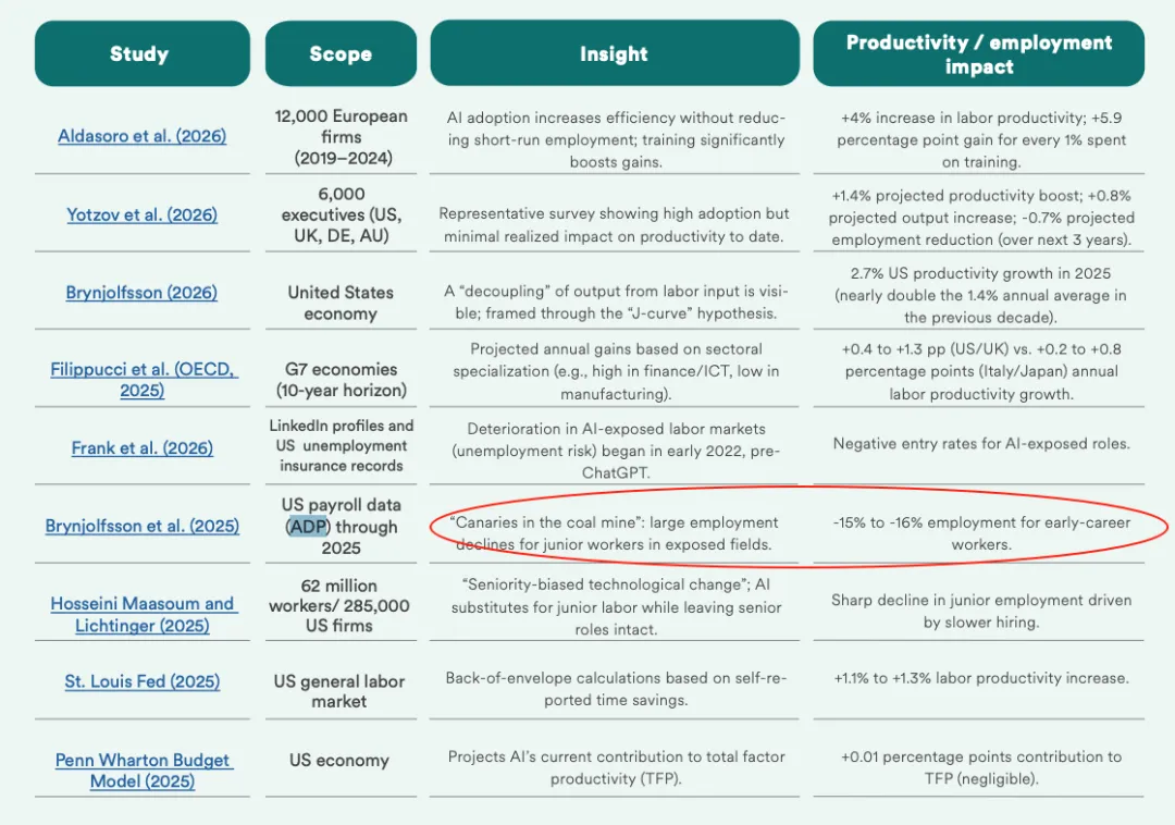报告里有一句话说得很直白:AI替代的是textbook knowledge,而年轻人正是依赖这部分知识进入职场的。