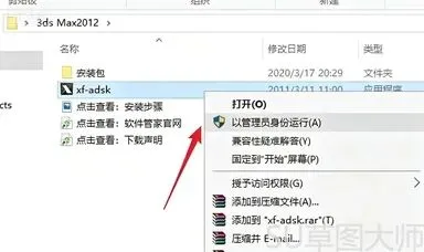 18.打开安装包解压后的【3ds Max2012】文件夹,鼠标右击【xf-adsk】选择【以管理员身份运行】。