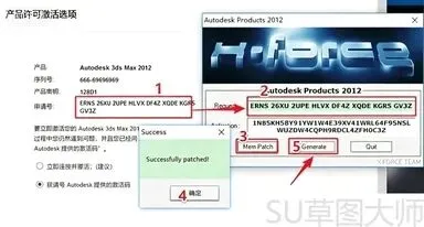19.生成激活码:①使用快捷键“Ctrl+C”复制【申请号】后的代码;②使用快捷键“Ctrl+V”将代码粘贴到【Request】后的框中;③点击【Mem Patch】;④点击【确定】;⑤点击【Generate】生成激活码。