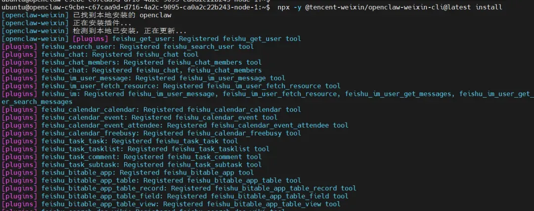 系统会自动下载并安装微信 ClawBot 插件,过程约需 1-2 分钟。