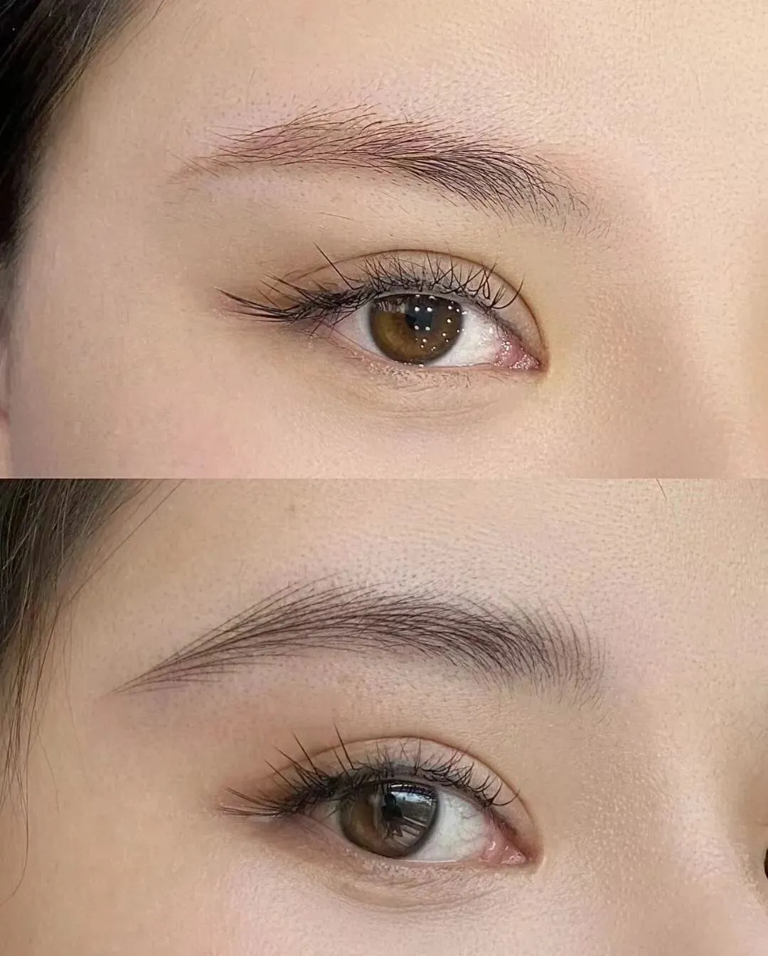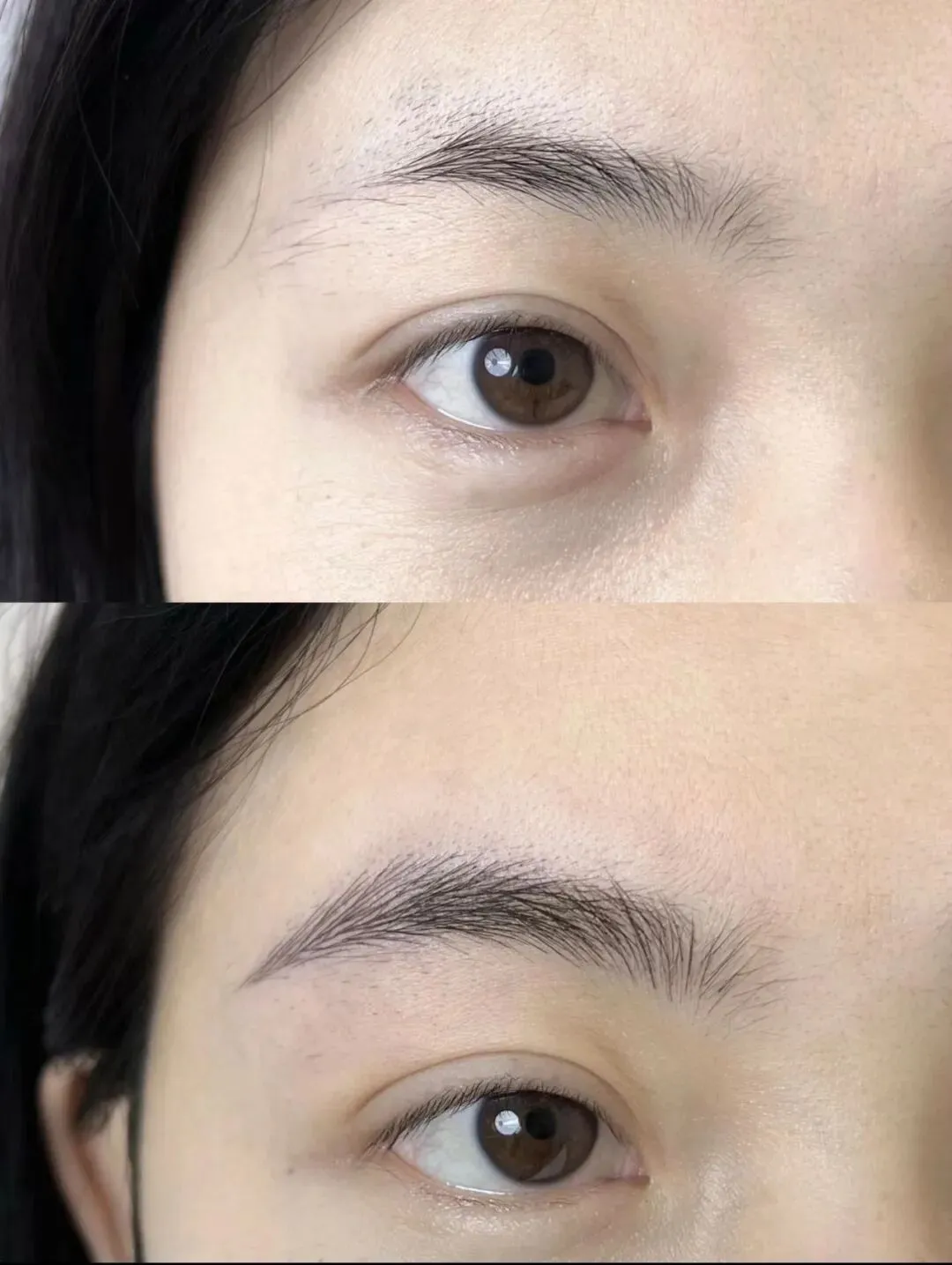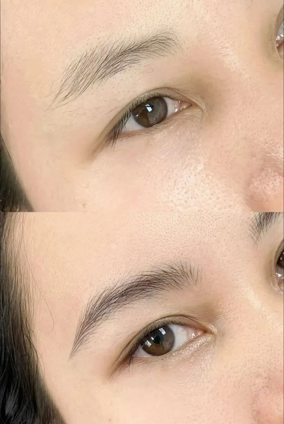 如果是成熟中青年女性,她们更想要眉毛持久、有型,能提气色,省去天天画眉的麻烦,也不喜欢太清淡、没存在感的眉形。所以操作的时候,入皮深度会稍微深一点,留色稍微久一点,眉形也做得更端庄大气,衬托出她们成熟温婉的气质,省心又精致,整个人看着都精神。