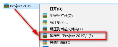 1.鼠标右键解压到“Project 2019”