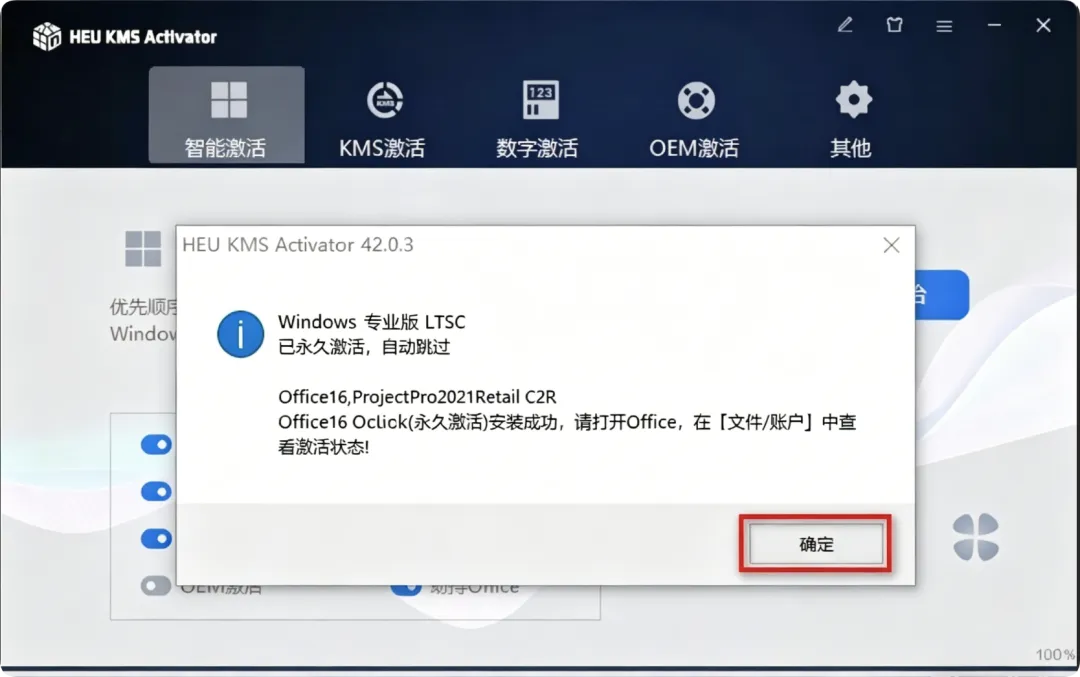 11.激活成功,点击“确定”