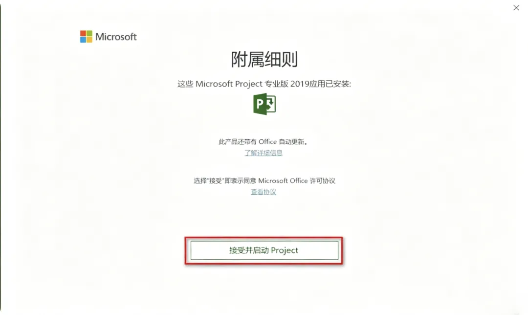 14.在开始菜单找到并启动软件,点击“接受并启动Project”