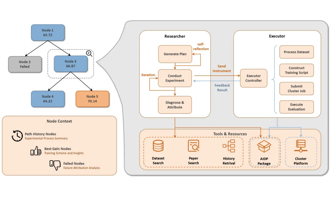 换句话说,现有的 AI Researcher Agent 能帮你读论文、写代码,但让它自己来调模型?还是太难了。