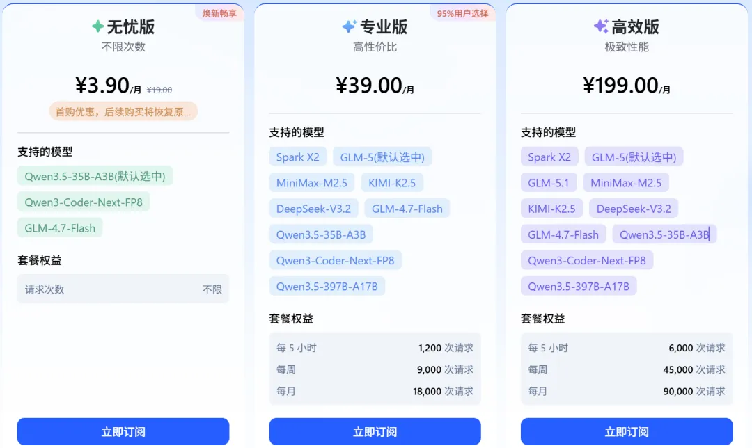 最近讯飞星辰就出手了,直接推出了3.9元无限畅享的套餐,彻底把Token焦虑扫进了历史垃圾桶。