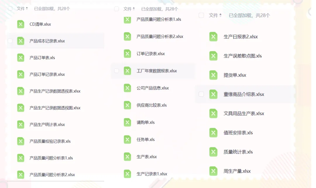 Excel表格:生产管理表格350个