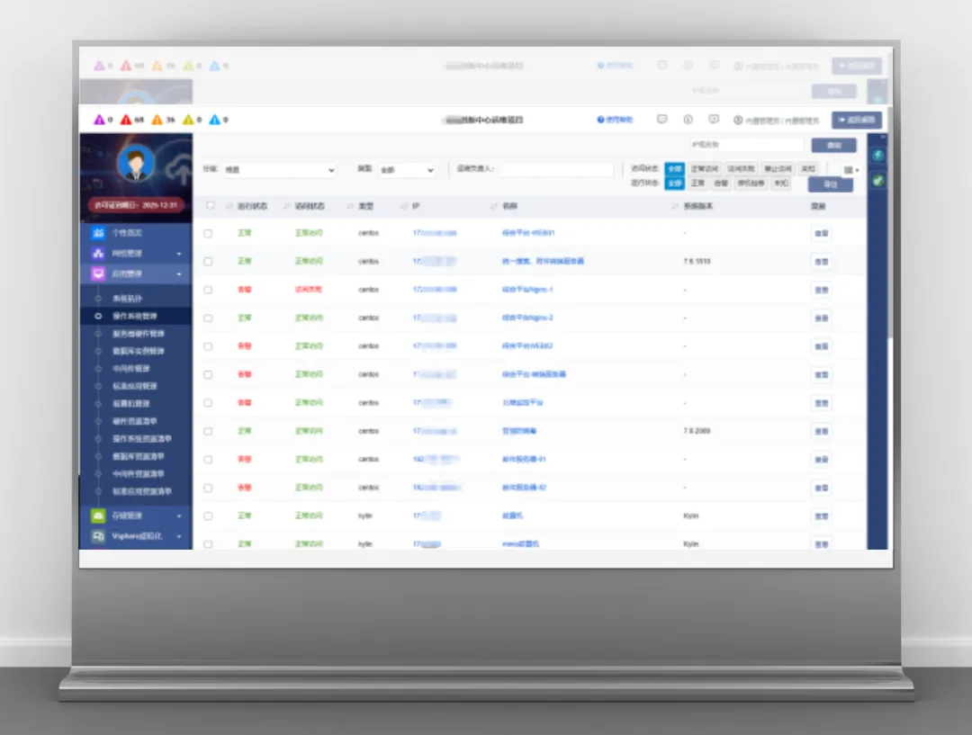 平台实现对IT基础设施的全方位监控,覆盖操作系统、服务器硬件、数据库、中间件及应用系统等多个层级: