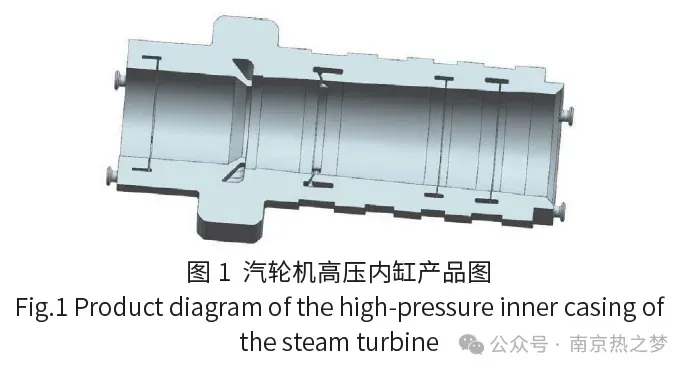 高压内缸广泛应用于超临界、超超临界火力发电汽轮机、大型压缩机等设备,需要在高温、高压工况下长期服役。其结构复杂、壁厚差异大、材料铸造性差,容易产生缩松、缩孔、热裂、组织不均匀等严重缺陷。高压内缸传统工艺的开发依赖经验设计和反复试浇,存在研发周期长、资源消耗大、质量风险不可控等弊端。采用数值模拟技术,通过精确复现铸造过程,为工艺优化提供了判定依据。本研究聚焦某型号高压内缸铸件,利用MAGMA 软件构建高保真仿真模型,深入分析铸造缺陷的形成机理,并据此开展系统性工艺优化,以期提升铸件质量和工艺可靠性。