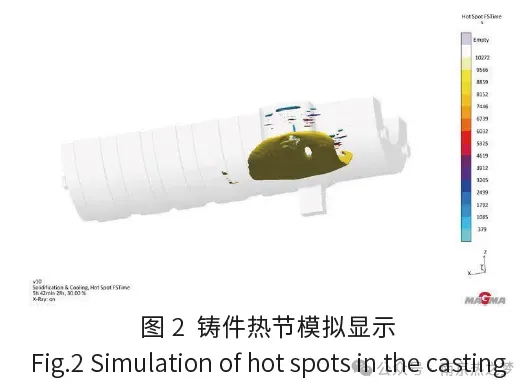 (1)如图2所示,热节主要分布在进汽腔室附近和定位搭子连接处,该汽缸整体壁厚较大,最小值为167mm,最大值为327mm,冷铁的激冷效果被削弱,使得补缩工艺的设计变得繁杂。