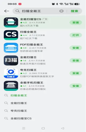 第一步:打开手机软件商店,搜索扫描全能王并下载安装。