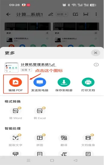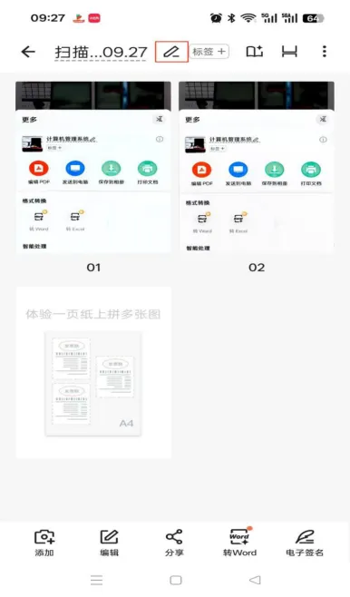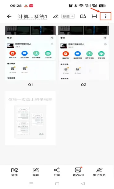 第四步:接下来将扫描好的文档转成PDF 形式,点击右上角的三个点的符号。