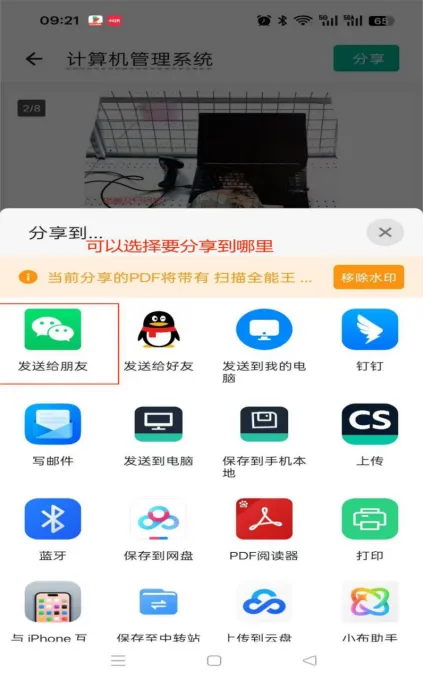 可以选择分享到自己好找的界面,例如微信的文件传输助手或者朋友