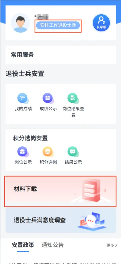 (1) 进入后查看当前身份,确认是否为【安排工作退役士兵】。