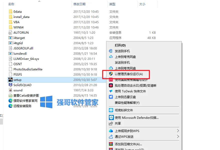 2.打开【Setup】文件夹,选中【Setup】选择【以管理员身份运行】