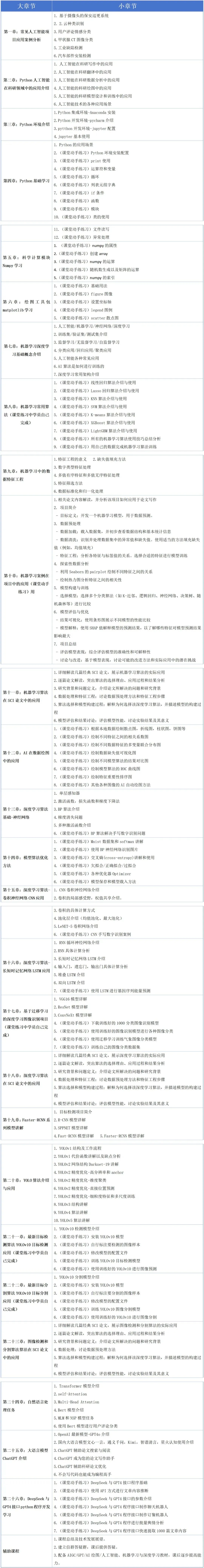 第一章 2026年大语言模型最新进展与ChatGPT、Gemini、DeepSeek等大语言模型讲解 | 1、国内外大语言模型(ChatGPT 5.2、Gemini 3.1 Pro、Claude、豆包、Kimi、DeepSeek等)对比分析 2、ChatGPT对话初体验(提示词输入、语音聊天、上传文档等) 3、ChatGPT canvas交互式对话界面功能演示(文本编辑:内容润色、修改文本阅读水平、调整文本长度、智能修改建议、选中指定片段进行修改;代码编辑:添加注释、添加程序日志、修复程序Bug、将代码转换为另一种编程语言、代码审查等) 4、ChatGPT Search功能演示(联网查询最新的新闻动态、最新发表的学术论文等) 5、ChatGPT Project功能演示(创建项目文件夹、构建项目知识库、设置项目指令等) 6、ChatGPT Prism论文写作与Latex排版功能演示 10、ChatGPT科研必备GPT汇总介绍(寻找好用的GPTs模型、提示词优化、生成思维导图、生成PPT、生成视频、制定个性化的学习计划、检索论文、总结论文内容、总结视频内容、撰写论文、论文翻译、论文润色与修改、参考文献格式管理、论文评审、数据分析、生成代码、代码调试等) 11、GPT Store简介与使用 12、定制自己的专属GPTs(制作专属GPTs的两种方式:聊天/配置参数、利用Knowledge上传本地知识库提升专属GPTs性能、利用Actions通过API获取外界信息、专属GPTs的分享) 13、Gemini 3 Pro对话页面功能演示(上传文件、Deep Research、Canvas画布、Guided Learning等) 14、NotebookLM功能简介与演示:(上传资料的四种方式;使用NotebookLM对资料进行加工整理并输出多种格式:音频、视频、思维导图、分析报告、知识闪卡、测验题、信息图、幻灯片、数据表格;使用NotebookLM的Deep Research功能联网检索指定主题内容并深入分析总结) 15、Nano Banana Pro 简介、新特性、提示词撰写方法与策略、提示词模板等。 16、使用Nano Banana Pro 绘制技术路线图、模型拓扑结构图、原理框图、教学插图、科普宣传海报等。 17、Colab简介:云端环境下的内嵌Python环境和免费GPU资源的AI开发环境。 18、Colab + Gemini:自动生成Python代码,实现数据的统计分析、预处理、可视化、机器学习与深度学习模型构建、代码注释与Bug调试等。 19、Gems App简介与功能演示:实现更少提示词、更少对话轮次获得更优答案的工具 20、自定义Gems App的开发:对话式开发(提示词模板)→ 工作流高级属性修改(模型选择、提示词优化)→ App上线发布 21、Llama3、DeepSeek等开源大语言模型的本地部署与对话 22、DeepSeek使用初体验(注册与登录、App下载与安装、界面主要功能介绍与演示等) 23、案例演示与实操练习 |