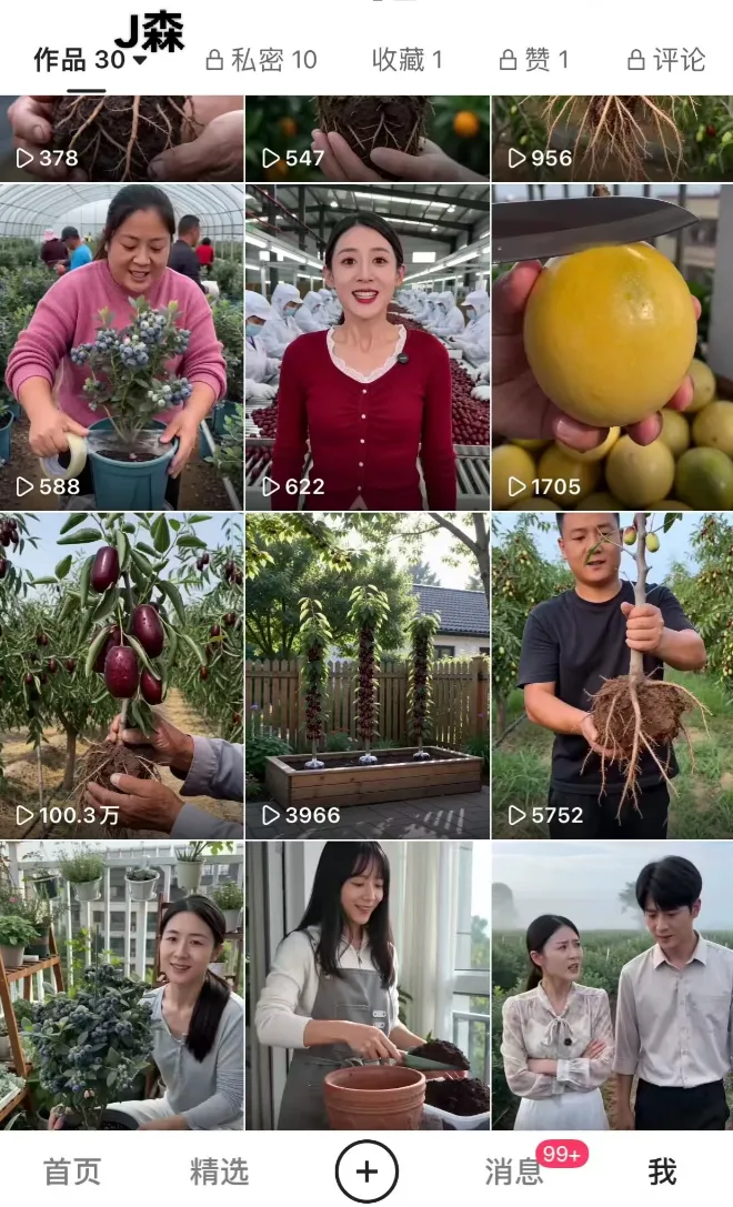 目前正值春季,种什么东西都比较容易成活。相信大家平时刷视频的时候经常都会刷到一些树苗的带货视频,其实这类视频都是通过AI去生成的,AI做出来的视频都是原创视频,所以基本上在哪个平台上面发数据都不会非常差,结合橱窗带货都会有很好的转化