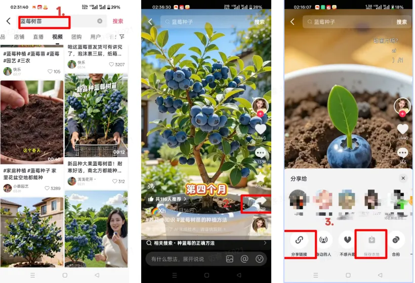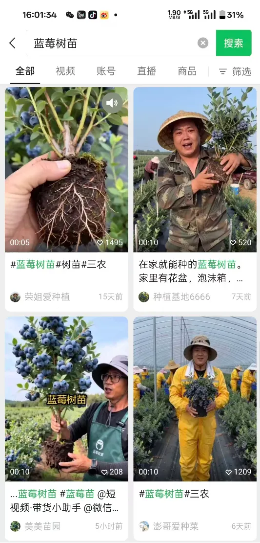 1.去抖音搜索:树苗种子,蓝莓过苗,冰糖脆枣过苗等相关关键词都能找到相关参考素材。