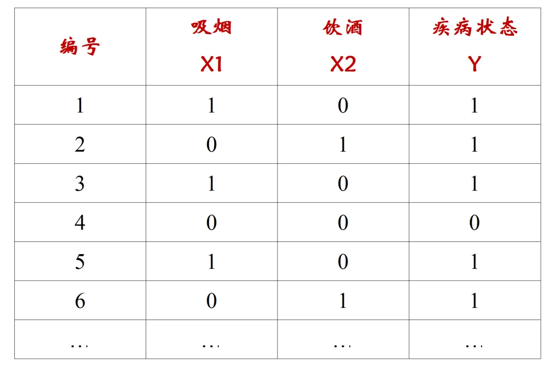 第73讲 如何用SPSS软件完成多因素Logistic回归本公众号由热爱统计的老师和学生共同创办,旨在为学生提供一个自主学习、探索展示和经验分享的平台,同时也是广大医学生、医务工作者和科研爱好者学习医学统计学知识和技能的小课堂。第73讲 如何用SPSS软件完成多因素Logistic回归上节课我们学习了多因素Logistic回归的应用范围(第72讲),本节课我们以具体实例带大家学习如何用SPSS软件完成多因素Logistic回归分析。课堂例题:一项关于吸烟和饮酒与食管癌关系的病例对照研究,数据格式见下表,试分析吸烟、饮酒是否与食管癌的发生有关。(例题来源:李康、贺佳,医学统计学教材)因变量:疾病状态,二分类定性变量(1=食管癌发生、0=食管癌未发生)自变量:吸烟,二分类定性变量(1=吸烟、0=未吸烟)1、打开数据库文件“食管癌多因素.sav”,在“分析”菜单“回归”中选择“二元Logistic”命令,打开Logistic回归对话框;
