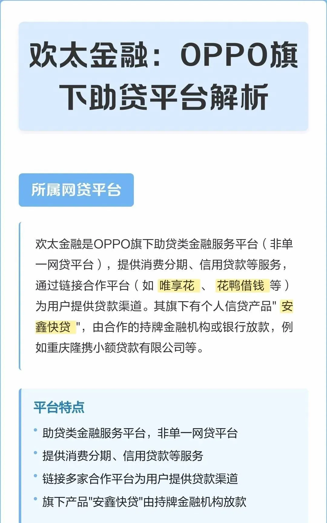 OPPO手机钱包APP目前为小辉付、易鑫车来财等第三方平台提供导流服务。欢太金融方面表示,“推动合作方持续做好服务”,释放了不会放弃导流业务的信号。