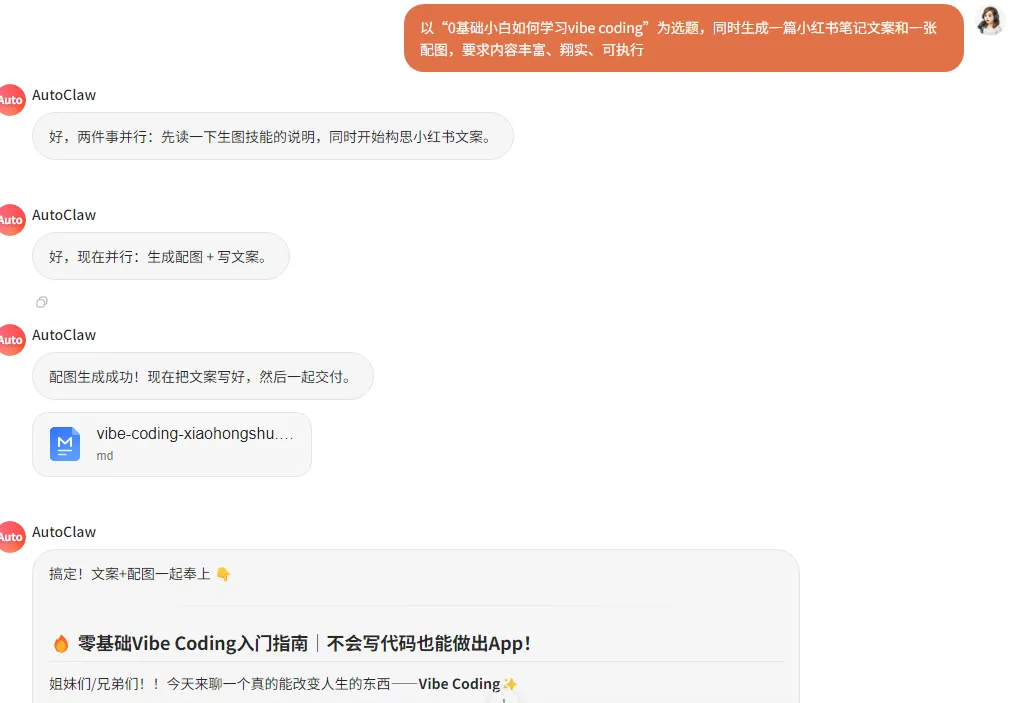 下面三段,每一句都是我给 AutoClaw 的指令。没有多余操作,没有二次确认,回车就跑。