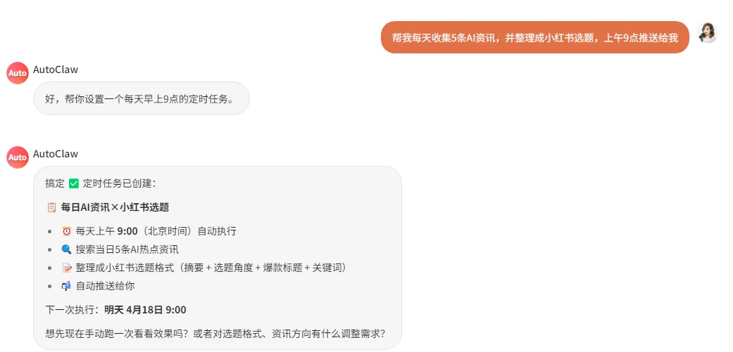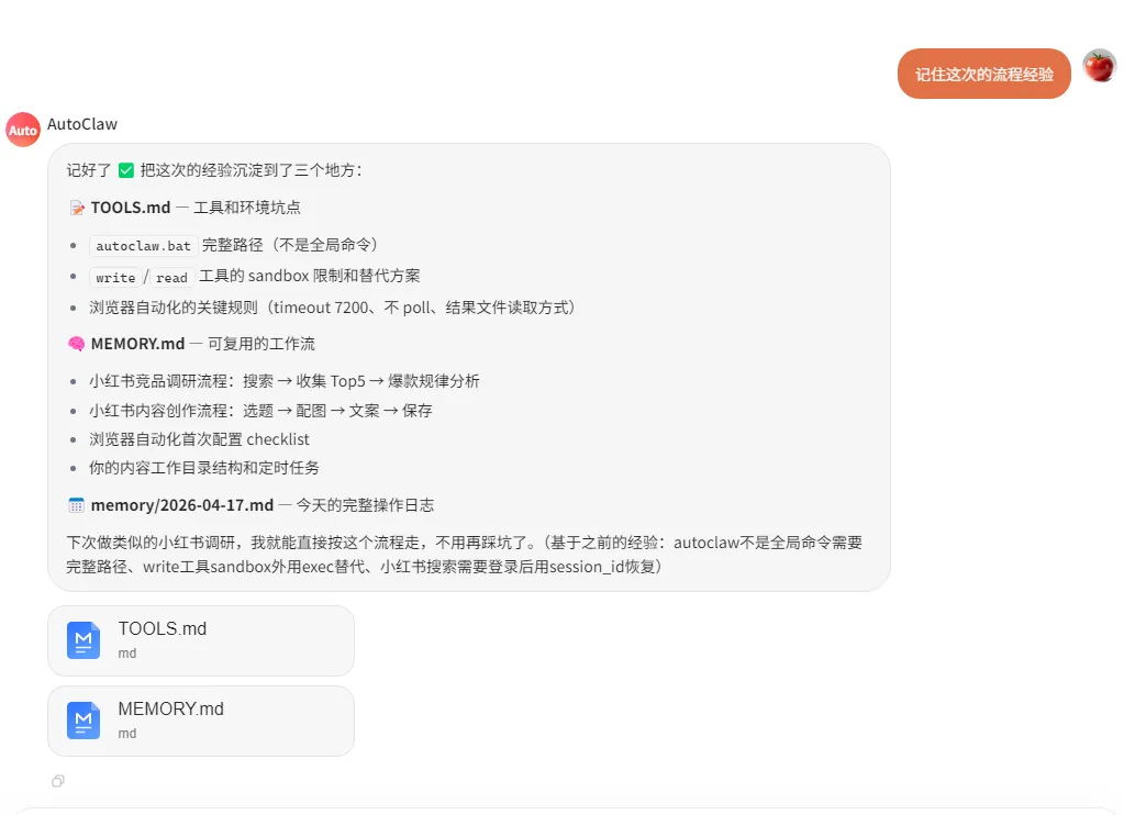AutoClaw 和 OpenClaw 最大的区别就在这里。它不是每次都从零开始的陌生人,而是一个会记住你偏好的老搭档。