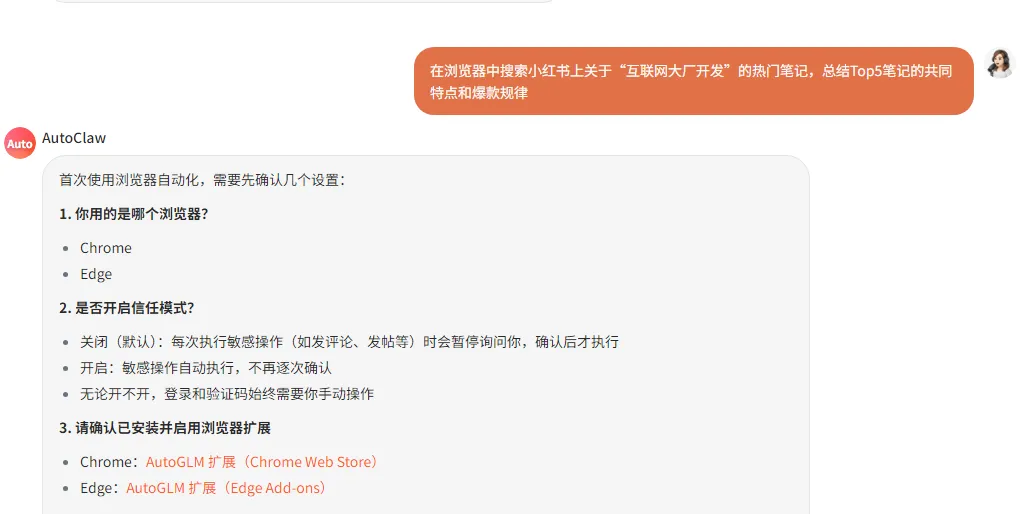 这就是 OpenClaw 时代就已经很强的浏览器自动化能力。到 AutoClaw 这一代,操作更丝滑了。