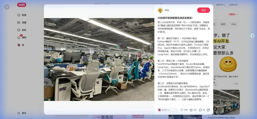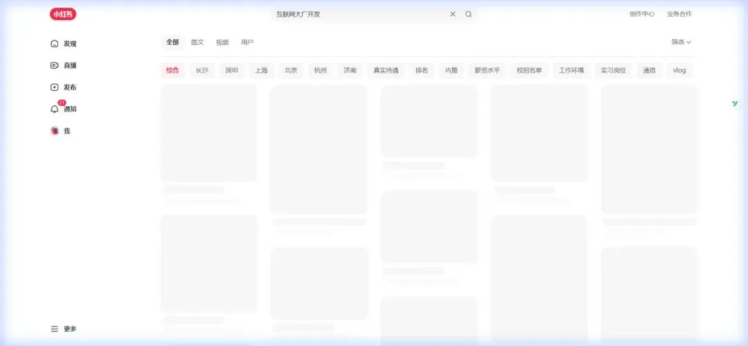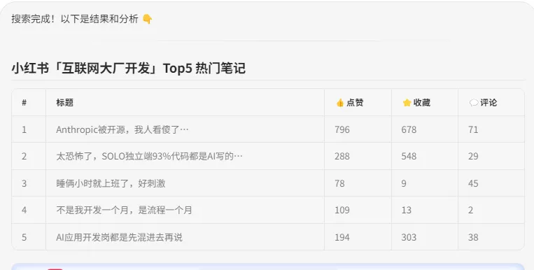 在浏览器中搜索小红书上关于"互联网大厂开发"的热门笔记,总结Top5笔记的共同特点和爆款规律