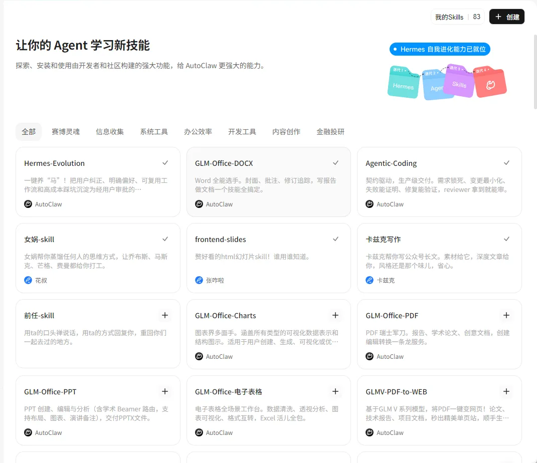 AutoClaw 干了一件事:把 OpenClaw 的能力和 Hermes 的自我进化机制,合体了。