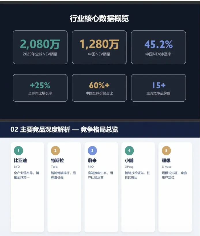接入 GLM Office Skills 后,你可以一行命令同时生成一整套材料。例如,「帮我做一份关于新能源汽车的竞品调研PPT,再配一份讲稿」,Agent 会先完成调研,再同步产出带图表的 PPT 和逐页讲稿 DOCX,直接就能上会演示。