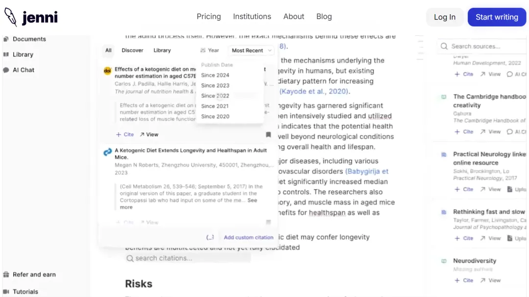 JenniAI可辅助整理基础引用格式,规范AI论文写作的文本格式,简化AI写论文的引用排版步骤,让AI生成论文更贴合学术格式要求,格式适配度较为基础,复杂排版需要手动调整,辅助论文写作排版。