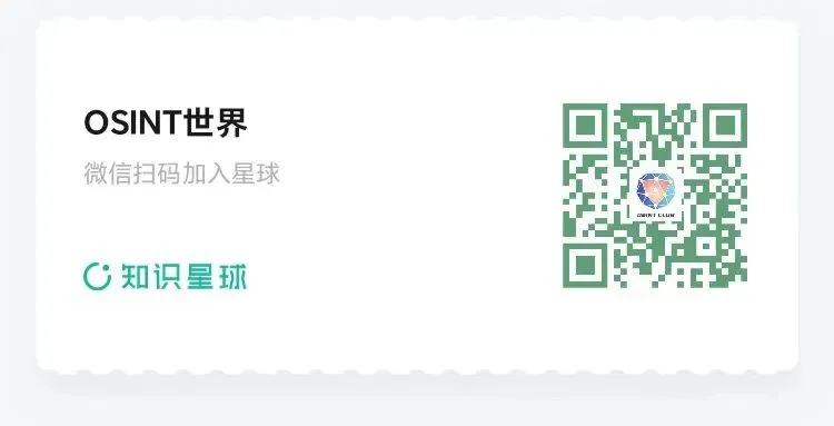 账号调整通知:由于原公众号“开源情报俱乐部”公众号及知识星球无法使用,后续所有境外组织机构及OSINT相关内容改为此号分享。深度详细调查文章发布知识星球“OSINT世界”。