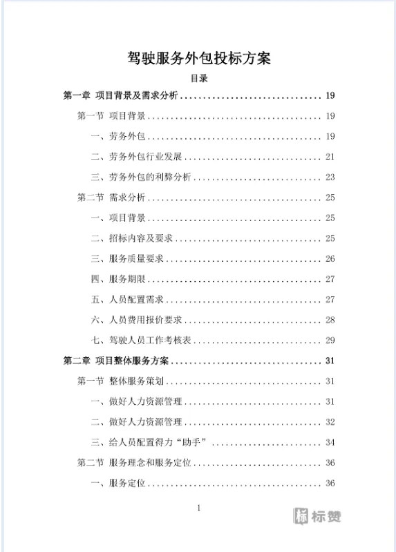 【标书模板】驾驶服务外包投标方案点击蓝字,关注我们最新方案模版 并肩作战 共创辉煌 驾驶服务外包投标方案(336页) 标书模板(word)下载 点击图片 直接下载精选目录精选内容浏览224页 标书模板(word)下精选内容浏览304页 标书模板(word)下载往期推荐【标书模板】医疗设备维保服务投标方案【标书模板】物流运输组织实施方案(适用于烟草、煤炭、化肥、橡胶等运输项目)【标书模板】配电工程投标方案【标书模板】施工图审查服务投标方案