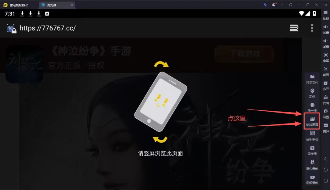雷电模拟器屏幕旋转示例图