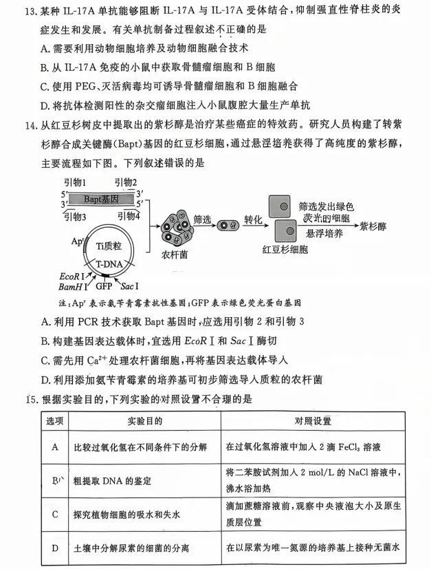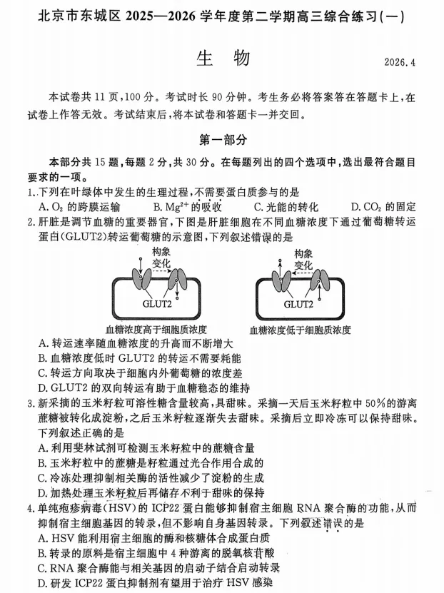 小编整理了2026年北京市东城区高三一模生物,PDF版!可以参考练习。