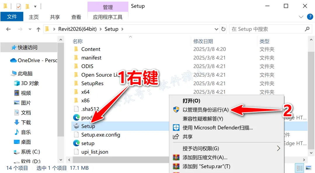 3.鼠标右击【Setup】选择【以管理员身份运行】。