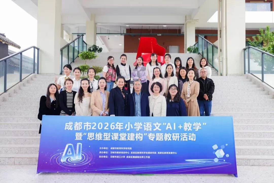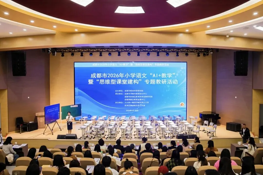 4月16日,成都市小学语文“AI+教学”暨“思维型课堂建构”专题教研活动在邛崃市滨江小学举行。