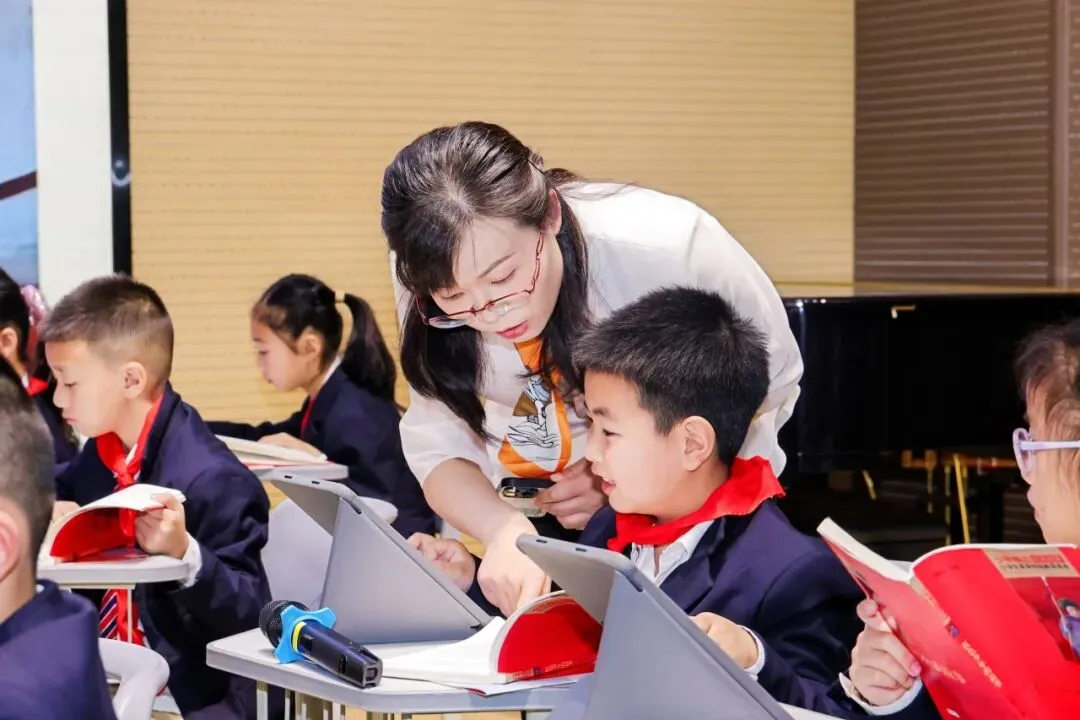 本次《红色少年的故事》整本书阅读推进课,以真实事迹铸魂育人,依托AI智伴赋能全流程。课堂以提问、对比、进阶为目标,落实多维互动与四维表达,引导学生从读故事走向会思考、善表达,深刻理解英雄源于选择。