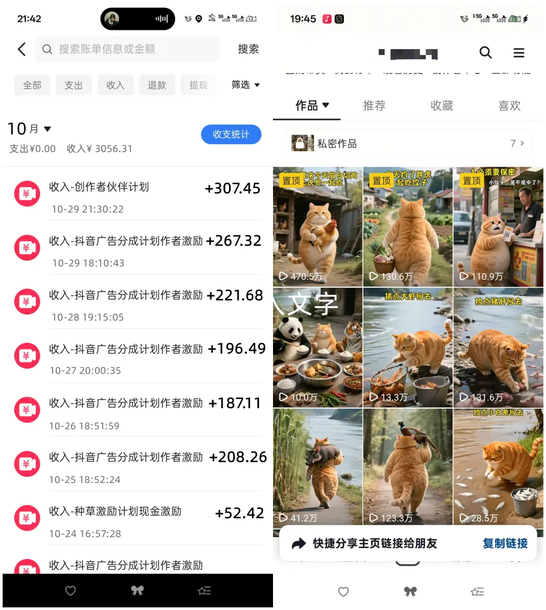 平台流量扶持:这种低门槛、高互动的内容,平台推流特别大方,一条视频爆了,后续的作品也会跟着有流量;
