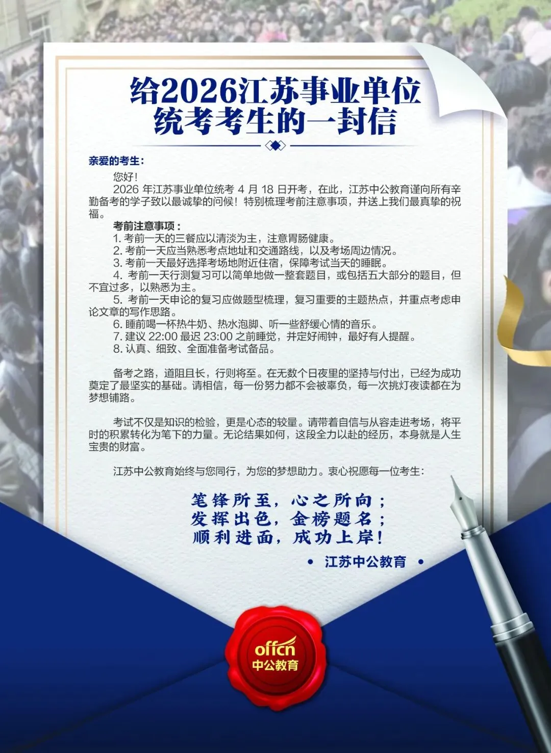 南京中公祝您:笔锋所至,金榜题名!