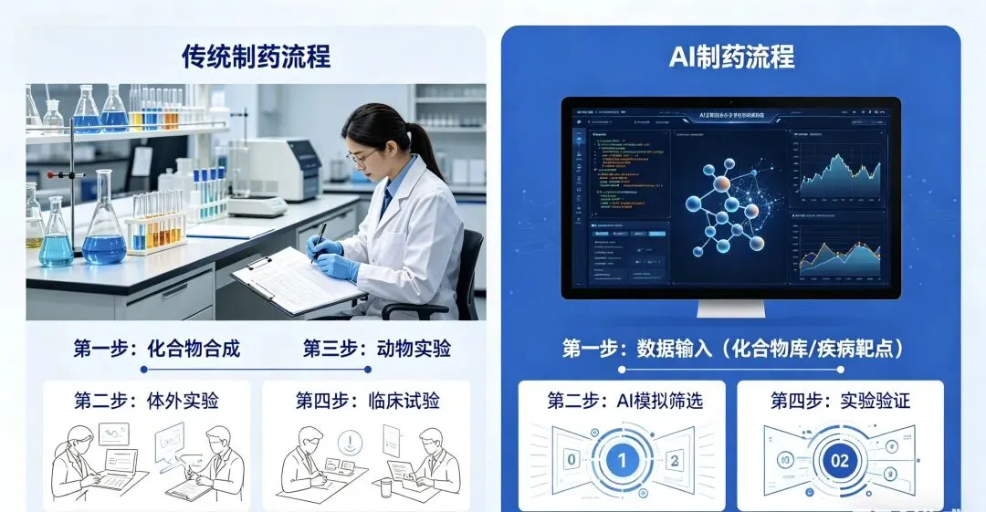 从行业变革角度,这是对传统制药研发范式的彻底颠覆。传统制药研发依赖科研人员经验与大量湿实验,属于“经验驱动+试错研发”模式,效率低下且风险极高;而AI制药实现了“数据驱动+精准研发”的范式转变,通过算法预判替代人工试错,让药物研发从“盲目摸索”转向“精准靶向”,重构了制药行业的研发逻辑与产业规则。