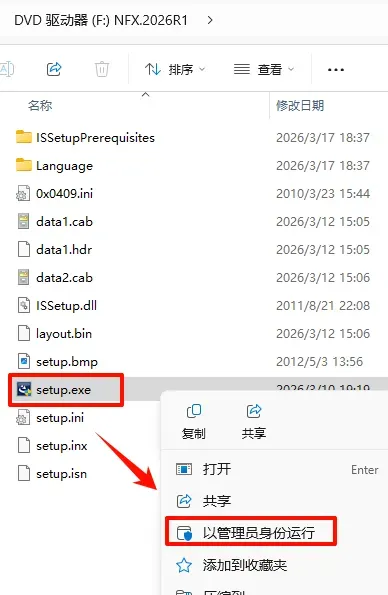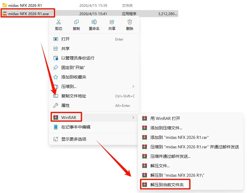 6.返回之前解压的“midas NFX 2025 R2”文件夹,鼠标右键点击“midas.NFX.2026.R1_2026.03.12.Win64.iso”文件,选择“装载”(如果没有“装载”选项的可以右键选择“打开方式—Windows资源管理器”打开)