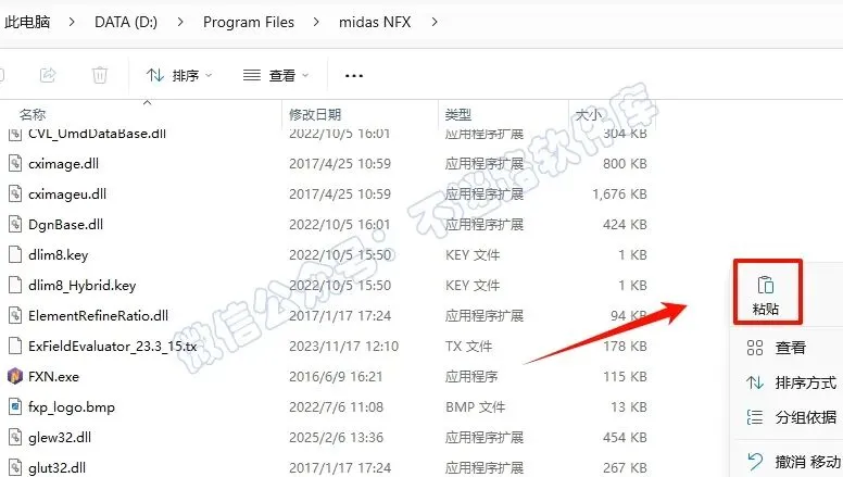 17.返回之前解压的“midas NFX 2026 R1”文件夹,依次打开“Crack——midas NFX”文件夹,选中 ”netapi32.dll“文件夹,鼠标右键点击“复制”
