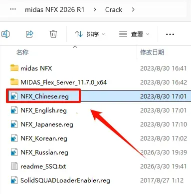 2.打开刚刚解压的文件夹,双击打开“Crack”文件夹,选中 ”MIDAS_Flex_Server_11.7.0_x64“文件夹,鼠标右键点击“复制”