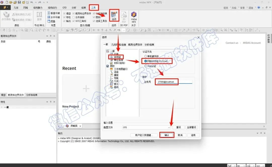 27.依次点击“工具--选项--许可证--网络许可证(FLEXnet)“,主机号输入:27880@localhost,点击”确认“