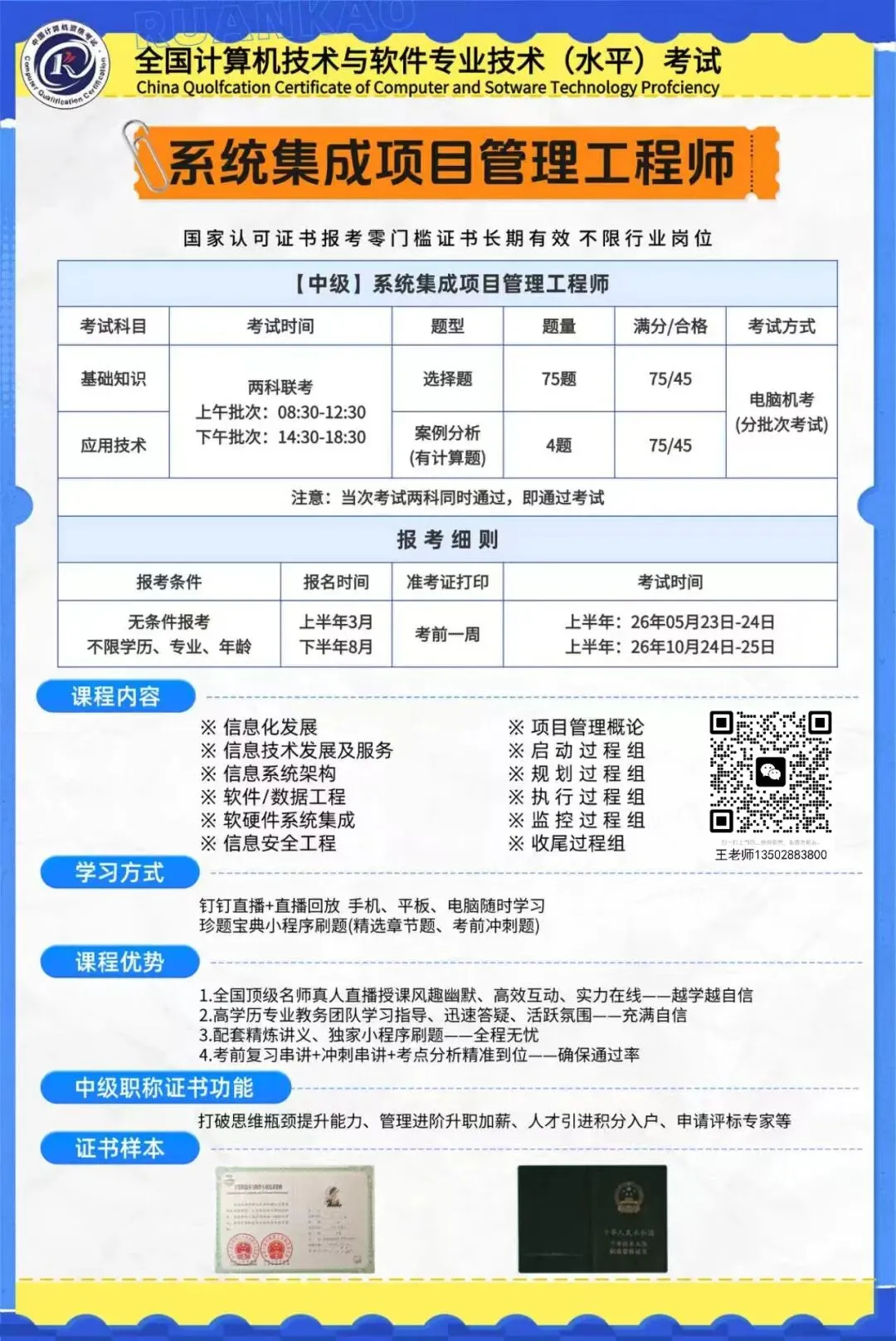 系统集成项目管理工程师:恢复一年两考【5月和11月】