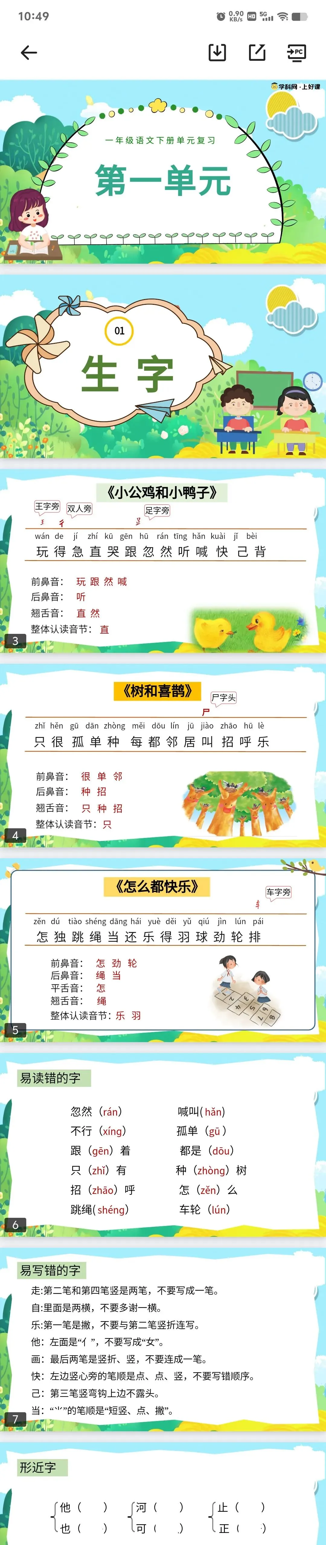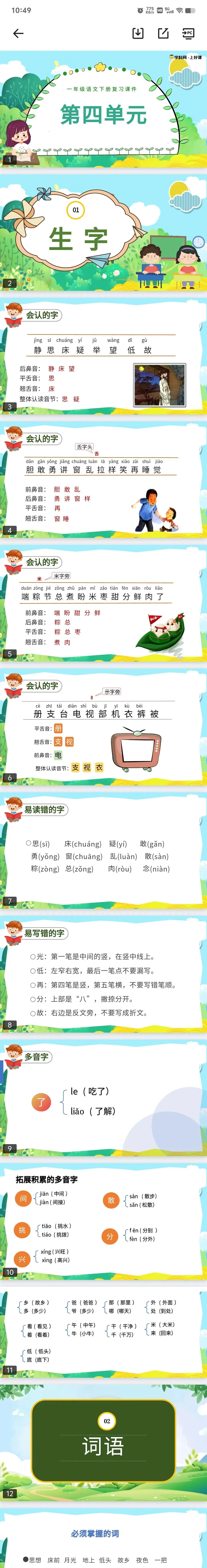 老师备课/家长辅导必备!1-8单元全覆盖,课件内容从生字、词语、多音字、易错题到课文重点、拓展练习,考点梳理清晰,搭配可爱插画,孩子爱看、老师好讲,一键下载就能用,帮孩子高效复习,夯实基础,轻松备战单元检测!