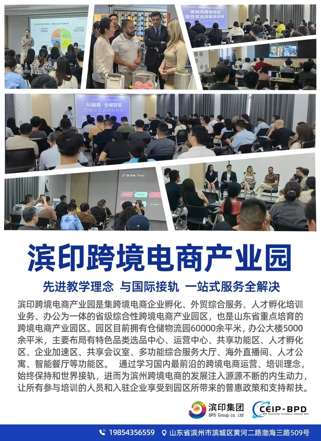 滨印跨境电商产业园旨在践行国企担当,促进跨境电商蓬勃发展。同时,为广大想做跨境电商的人员提供坚实的支持与服务,为滨州市跨境电商产业的集群化发展做出贡献。