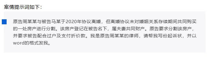 为了直观呈现不同AI工具在文书起草上的真实差距,我们使用了同一案情描述,同时提交给Claude、DeepSeek、豆包和智拾网AI工具,要求各自起草一份起诉状,并以Word格式输出。