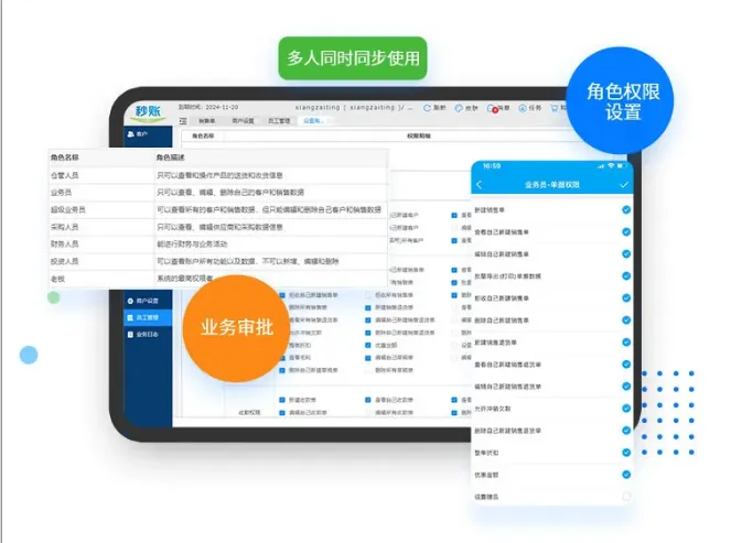 另外,软件支持开设专属员工子账号,可多个账号同时在线操作开单打单,同时商家还可对员工账号进行角色分配和权限管理,这一功能不仅提高了团队的协作效率,还确保了业务数据的安全性与准确性。